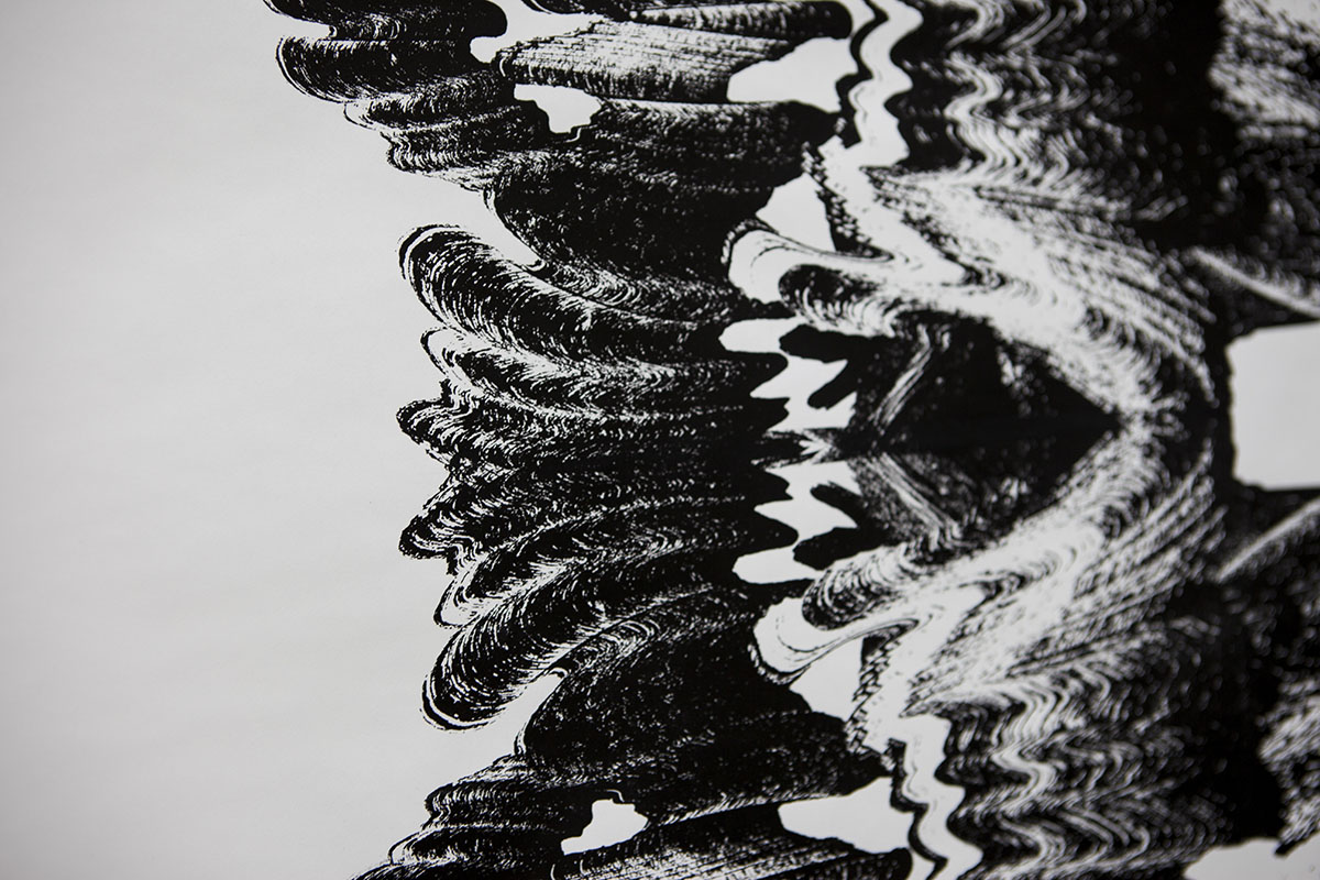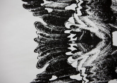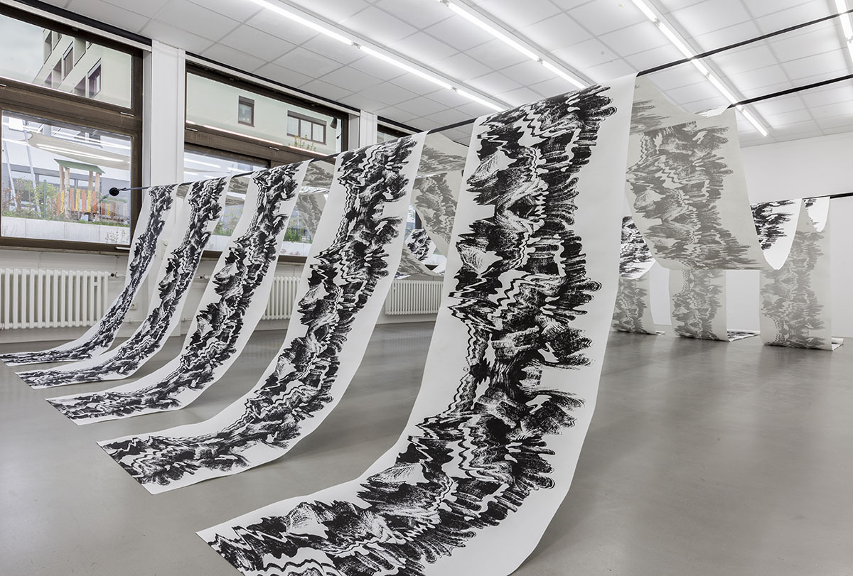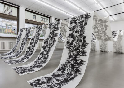 Hetty Hollm, geboren 1996 in Berlin, lebt und arbeitet in Mainz. In ihren übergroßen Inkjet-Prints thematisiert sie die Technik der KI-basierten Gesichtserkennung und den sozial-emotionalen Aspekt des Menschen hierzu. Bei ihren überdimensionierten Siebdrucken auf Papierrollen stellt sie Elemente von traditionellem Handwerk, serieller Reproduktion und digitaler Bearbeitung gegenüber.