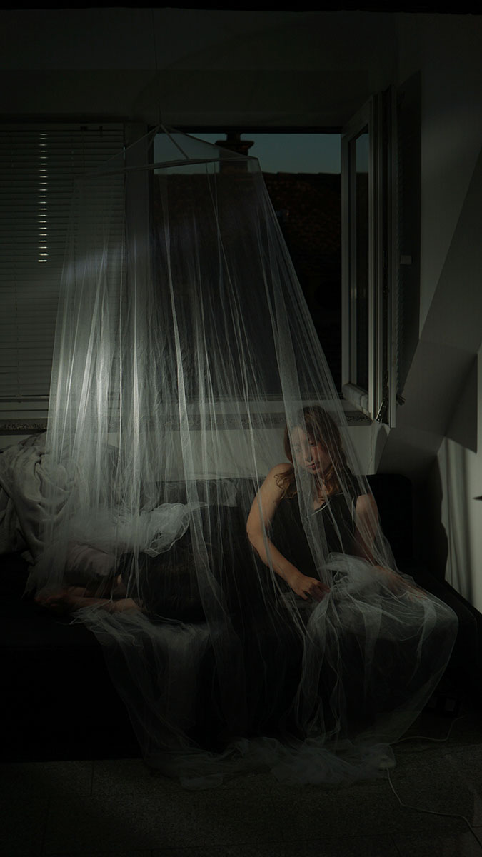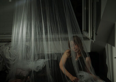 Elpida Christina Tsaousidis, geboren 1993 in Dieburg, lebt, studiert und arbeitet ebenfalls in Mainz. Ihre Arbeiten widmen sich dem Thema des transgenerationalen Traumas. Wie werden kollektive und individuelle Erfahrungen von Verlust, Angst, Krisen und das Gefühl von Anpassung oder dem Bedürfnis nach Neuanfang über Generationen hinweg fortgeschrieben. Ihre künstlerischen Ausdrucksformen gehen von Rauminstallationen, über Performance-Kunst bis hin zu filmischen und fotografischen Arbeiten.
